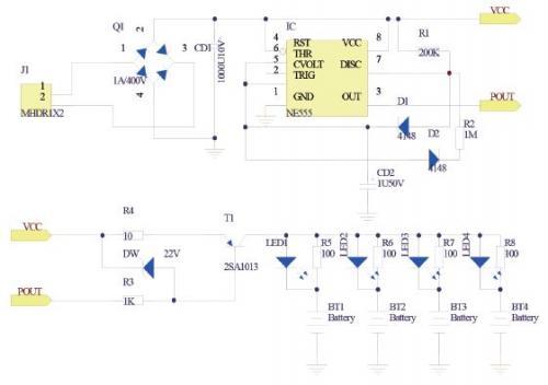 3.2創建原理圖文件并完成電池充電器電路的原理圖設計Ni-MH電池充電器電路原理圖如下圖1所示。