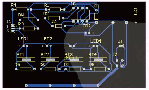Protel 2004中布線時首先要設置好布線規則,以滿足安全原則等電氣要求。根據充電器電路的實際要求,這里設置安全間距為10mil,頂層布線、普通線寬10mil、電源線20mil、地線30mil.布線采用自動布線,對不合乎要求的地方后可以進行手工修改。布線時在滿足安全原則等電氣要求的前提下,導線要精簡,盡可能短,盡量少拐彎,力求導線簡單明了。