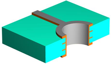 為了使通孔能在各層之間導通(使孔壁上之非導體部份之樹脂及玻纖束進行金屬化),在孔中必須填充銅。一步是在孔中鍍薄薄一層銅,這個過程完全是化學反應。終鍍的銅厚為50英寸的百萬分之一。