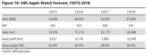 來源:UBS 分析師:Apple Watch 明年將會熱賣