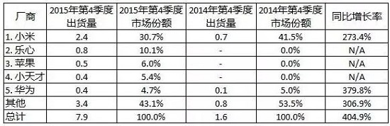 繼之前發布2015年全球可穿戴智能設備市場報告之后,際數據公司IDC在今日又發布了2015年四季度中市場的可穿戴智能設備數據,這是IDC首次發布關于中市場的可穿戴智能設備數據,兩份報告數據相互對照,揭示了2015年可穿戴設備市場翻天覆地的變化,也反映出中市場與際市場的不同之處。