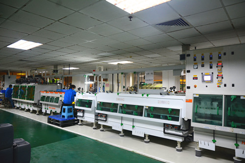 參訪團(tuán)后走訪了珠海鎮(zhèn)東有限公司。珠海鎮(zhèn)東成立于1999年1月1日,公司的核心產(chǎn)品是印制電路板制造用陶瓷刷輥、不織布刷輥、尼龍針?biāo)⑤仭⒒鹕交宜⑤仯硗膺€有光學(xué)級(jí)曝光玻璃、全系列各類(lèi)刷板機(jī)系統(tǒng)(21刷/17刷/13刷/9刷/8刷/4刷/2刷/1刷<以及薄板、厚板>)、砂帶研磨機(jī)、銅粉過(guò)濾機(jī)、真空絲印機(jī)和匹配型塞孔油墨/樹(shù)脂等線路板制造用相關(guān)設(shè)備及物料, 并為廣大客戶提供真空絲印塞孔、研磨的代工服務(wù)。在珠海鎮(zhèn)東的生產(chǎn)車(chē)間內(nèi),各生產(chǎn)設(shè)備正在正常運(yùn)行,工人們有條不紊地調(diào)整著設(shè)備參數(shù)。據(jù)總經(jīng)理趙其平介紹,2016年開(kāi)工大吉,訂單量穩(wěn)中有升,今后將繼續(xù)提升企業(yè)的科研實(shí)力,以優(yōu)質(zhì)的產(chǎn)品服務(wù)客戶、為客戶創(chuàng)造價(jià)值。