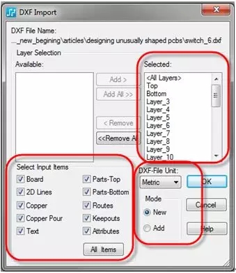 圖 5:PCB 設計工具(如這里介紹的 PADS)需要能夠使用 DXF 格式控制所需的各種參數。