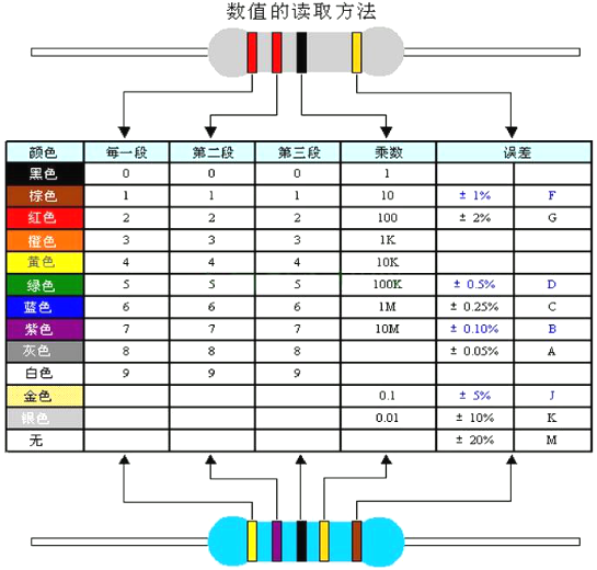 電阻的色標位置和倍率關系如下表所示: