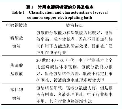 常用電鍍銅鍍液的分類及特點(diǎn)列于表 1。
