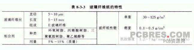 (5) 增強(qiáng)材料CEM-3 采用電子級玻璃纖維布和電子級玻璃纖維紙兩種增強(qiáng)材料。面料的增強(qiáng)材料一般用7628 玻璃纖維布,對一些特殊用途的CEM-3 也采用2116 玻纖布,但會增加產(chǎn)品成本。玻纖布和玻纖紙必須經(jīng)過硅烷偶聯(lián)劑表面處理,以提高耐潮濕性、耐熱性、電氣絕緣性。玻纖紙的強(qiáng)度較低和內(nèi)應(yīng)力很小,其對板材翹曲影響較小,而玻纖布存在編織張力及內(nèi)應(yīng)力殘留、經(jīng)緯紗偏斜等不穩(wěn)定因素,對CEM-3 翹曲影響較大,因此,必須注意玻纖布的經(jīng)、緯紗的編織密度、緯斜等,同時,生產(chǎn)CEM-3 時須注意面料要同機(jī)同布。芯料的增強(qiáng)材料采用玻璃纖維紙(簡稱玻纖紙,又稱玻璃纖維無紡布、玻璃纖維氈、玻璃紙等) ,它由短切玻纖、粘合劑,用濕式短網(wǎng)抄紙機(jī)按抄紙方法制成,其特性見表8-3-3 。CEM-3 用玻纖紙一般以綜合性能好的環(huán)氧樹脂或丙烯酸樹脂為粘合劑;用聚乙烯醇作粘合劑的玻纖紙,雖然價格便宜,但是耐熱性、耐水性差,已被淘汰出CEM-3 用玻纖紙之列。