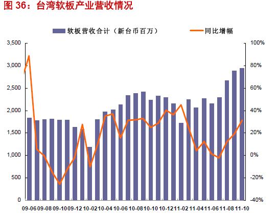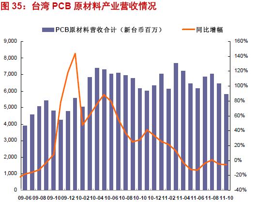PCB 上游關鍵原材料玻紗布、鍍銅板價格降低。受此影響,臺灣PCB 原材料產業10 月份營收合計58.15 億新臺幣,環比下跌9.82%,同比下滑5.50%。軟板產業表現較好,10 月份實現營收29.45億新臺幣,同比增長31.55%,環比增長2.22%。行業普遍不景氣的情況下,依舊保持著整體穩步向上的態勢。
